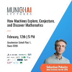 12 FebMunich AI Lecture: Prof. Dr. Sebastian PokuttaGuest lecture on AI-supported mathematical research – How machines explore, conjecture and discover mathematics.