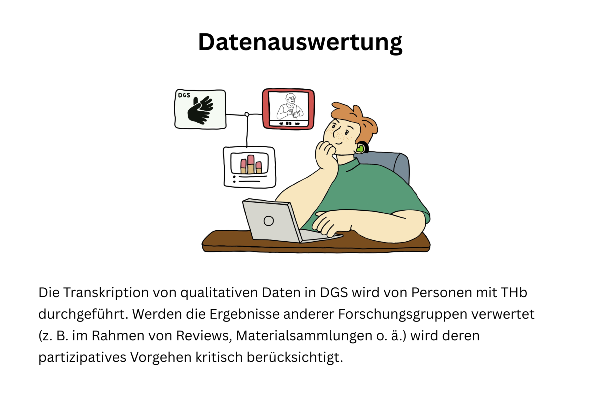 Unsere Forschung ist partizipativ ausgerichtet und bezieht Menschen mit Taubheit/Hörbehinderung aktiv in alle Phasen der Projekte ein. Erfahren Sie hier mehr.
