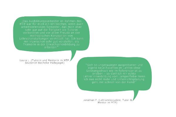 Vielen Tutor:innen macht ihre Tätigkeit im Rahmen des MTPs so viel Spaß, dass sie auch nach ihrem Einsatzsemester gerne weitermachen möchten. Darüber freuen wir uns , denn es zeigt nicht nur den Erfolg des Programms, sondern hilft auch dabei, im Rahmen des MTP gewonnenes Wissen und Kompetenzen von einer Studierenden-Generation an die nächste weiterzugeben. Wenn Sie Lust haben, können Sie sich sehr gerne auch noch nach der Tutorenausbildung langfristig als Tutor:in oder Mentor:in im MTP engagieren.!