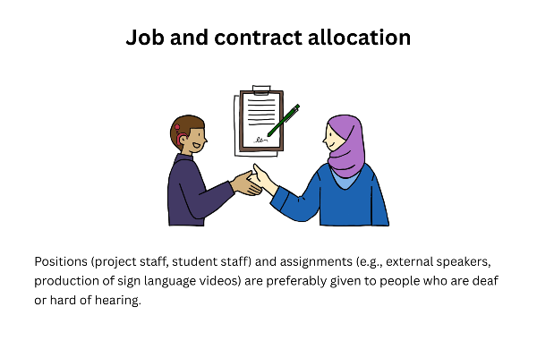 Below, we outline principles that are taken into account for the participation of people with deafness/hearing impairment:
