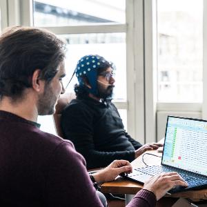 Recording of brain activity using EEG. | © LMU / Johanna Weber