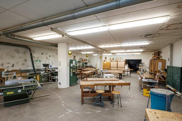 Der Raum 3014 ist eine multifunktionale Werkstätte. Hier finden Seminare zu den Themen Kunststoff, Metall und Holz statt. Die vorhandenen Werkzeuge und Maschinen erlauben die grundlegende Bearbeitung des Trennens, Verbindens und Verformens der Materialien.