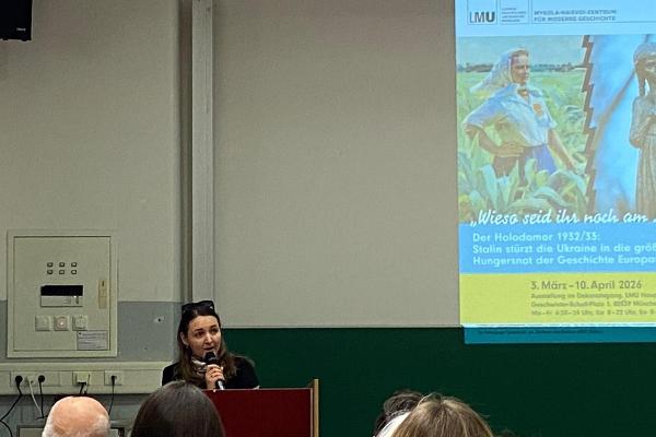 Während der Eröffnung bezeichnete Professor Martin Schulze Wessel, Co-Direktor des MHZ, den Holodomor als „das größte der sowjetischen Massenverbrechen“; die Zahl seiner Todesopfer übertraf jene des gesamten Gulag-Lagersystems. „Stalin wollte die Ukrainer als Nation auslöschen.“ Der Historiker hat zusammen mit dem ukrainischen Co-Direktor Professor Yaroslav Hrytsak (UCU) im Jahr 2024 einen Band zum Holodomor herausgegeben: „Hunger als Waffe”. Er ist öffentlich hier frei zugänglich.