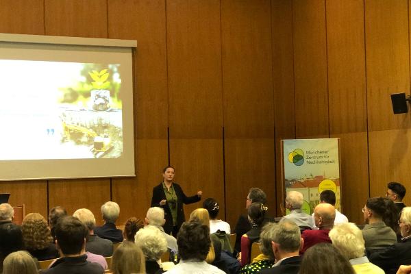 Zahlreiche Gäste aus Wissenschaft, Hochschullehre, Stadtpolitik, Stadtverwaltung, Zivilgesellschaft und Studierendenschaft kamen zusammen, um die Leistungen der Preisträgerinnen und Preisträger zu würdigen und sich über aktuelle Nachhaltigkeitsfragen auszutauschen. Nach der Begrüßung durch Prof. Dr. Markus Vogt (LMU) und Boris Schwartz (Landeshauptstadt München/ Referat Klima- und Umweltschutz) gaben die Preisträgerinnen und Preisträger gemeinsam mit ihren Laudatorinnen und Laudatoren Einblicke in die ausgezeichneten Arbeiten sowie in persönliche Erfahrungen aus Forschung und Lehre.