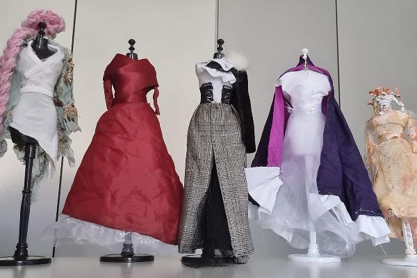 This exhibition presents a series of mixed-media outfits constructed on miniature mannequins, translating literary interpretation into texture, colour, and silhouette. Each figure treated fabric as a narrative surface, where clothing carried symbolic weight and embodied themes of transformation, disguise, and becoming. Displayed together, the works form a constellation of dressed bodies in which literature isrendered wearable and meaning was stitched into form.
